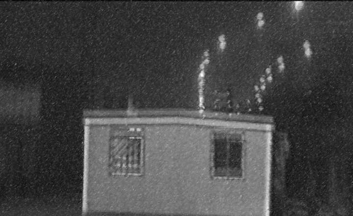 La disposición de las 64 peanas blancas construye tanto la representación gráfica de un número como la recreación de un espacio trivial. Las unidades de la estructura reticular (peana y modelo) están separadas entre sí de manera que el espacio no ocupado forma parte de la propia recreación tridimensional. La proyección de la filmación reconstruida con los dibujos sobre las paredes de la sala constituye el elemento envolvente que aúna lugar trivial, no lugar y representación..