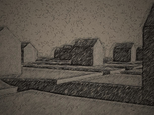 Además de los dibujos realizados para la vídeo instalación, se realizaron bocetos adicionales en carbón vegetal de gran formato inspirados en fotogramas de las distintas filmaciones que se grabaron durante la realización de la pieza Cloned City.